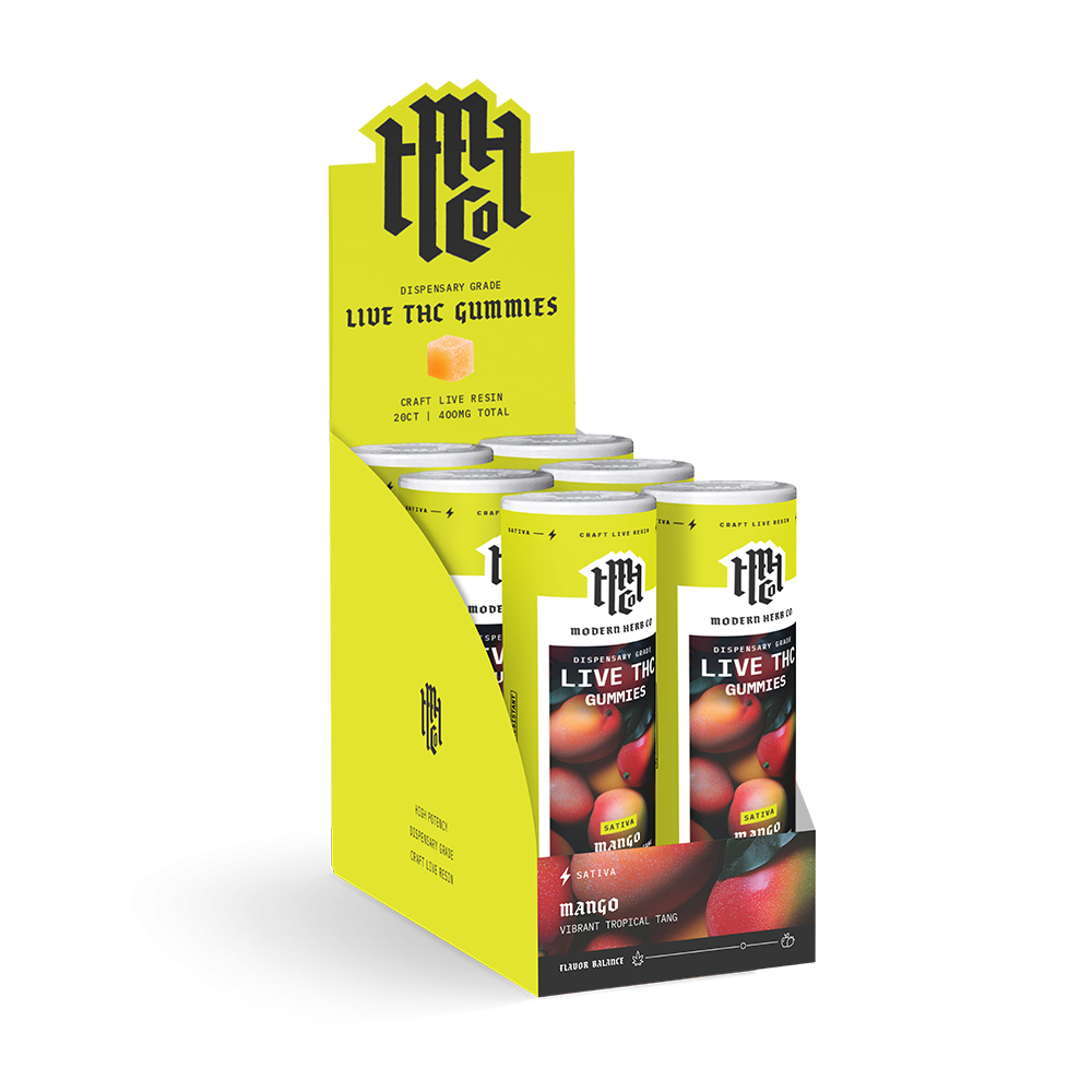 A 20-count jar of mango-infused gummies designed to uplift and activate. Each piece contains hemp-derived Delta 9 THC and terpene-rich live resin for clean energy and creative flow—ideal for work, play, or social time.